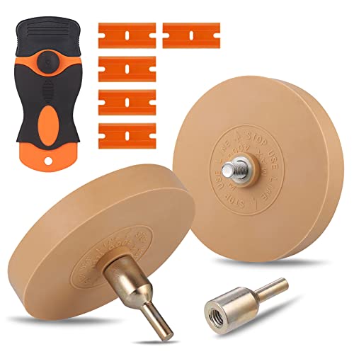 2 Pcs Borrador Calcomanía Removedor de Coche con Adaptador y 1 Rasqueta para Vitrocerámica Multiusos Ampliamente Utilizado para Quitar Pegamento, Etiqueta Engomada, Pintura, Vinilos en Coche y Vidrio