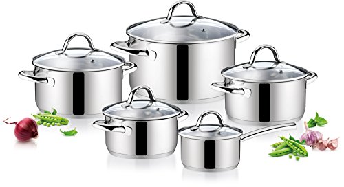 Silit Batería de Cocina Piezas, Acero Inoxidable, Plata, 10-teilig (mit Pfannen & Glasdeckel), Unidades