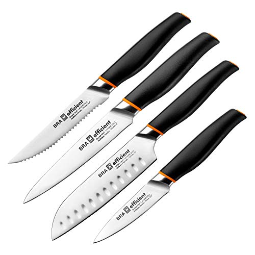 Juego de 4 Cuchillos Profesionales Bra Efficient en Acero Aleman Molibdeno Vanadio. Gama Premium
