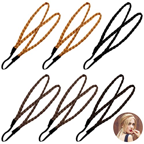Diadema Trenzada para Mujer 6 Piezas Diademas de Pelo Sintético Natural Doble Elástica Accesorios de Cabello Braid Hair Headband de Color Negro Marrón Oscuro Marrón Dorado Largo 24cm