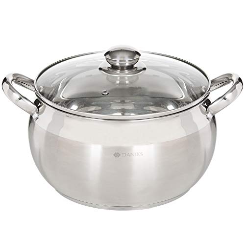Daniks Classic Olla de Acero Inoxidable con Tapa de Vidrio | Olla Inducción | Escala de medición | Mangos a Prueba de Calor | 4L, Ø 20 cm | Plata