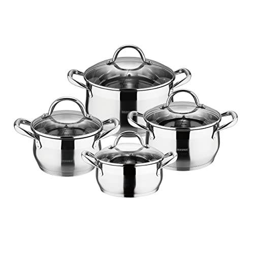 BERGNER Gourmet | Batería de Cocina de 8 Piezas | Acero Inoxidable | Incluye 4 Cacerolas con Tapas | Muy Resistente, Fácil de Limpiar y Para Todo Tipo de Cocinas