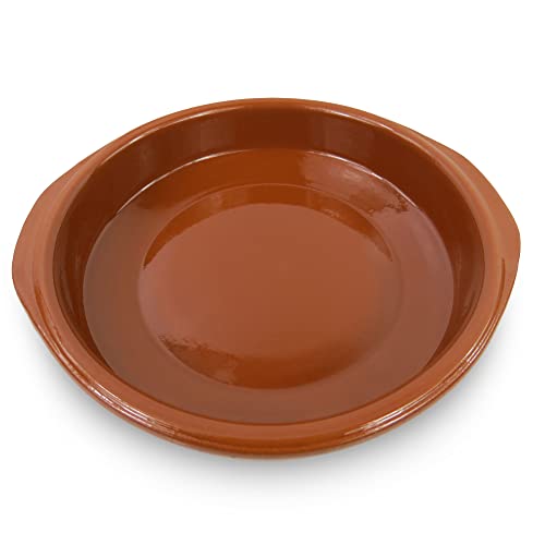 Pack de 2 cazuelas redondas de barro con asas, diámetro exterior 37,6 cm (asas incluidas), diámetro interior 33,2 cm, aptas para vitro y horno