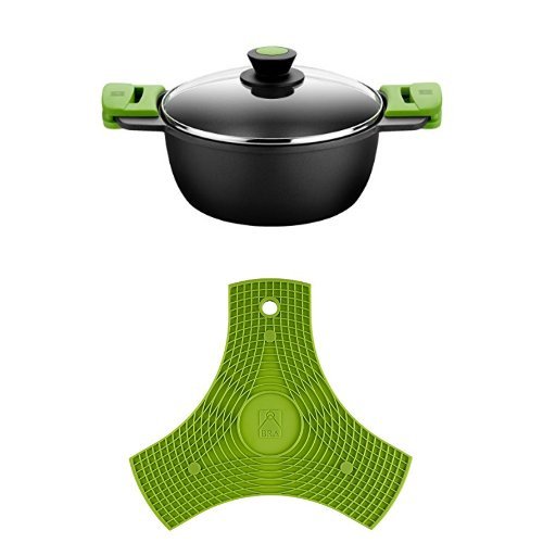 BRA PRIOR - Cacerola alta con tapa de cristal y asas de silicona, 28 cm + Salvamanteles de silicona multiusos BRA Safe 2 unidades