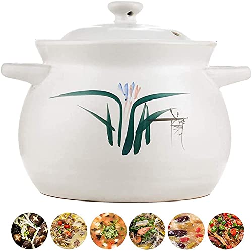 JHYS Cazuela, Cazuela Redonda Grande de cerámica, Olla de cocción Lenta con Dos Asas y Tapa, Ideal para cocinar al Horno o al Horno, Cazuelas de Naranja de 4 l