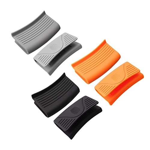 6 soportes de silicona para mango caliente, guantes de cocina de silicona gruesos, soporte para cacerolas, agarraderas de silicona de ayuda para ollas calientes, color negro, naranja y azul claro