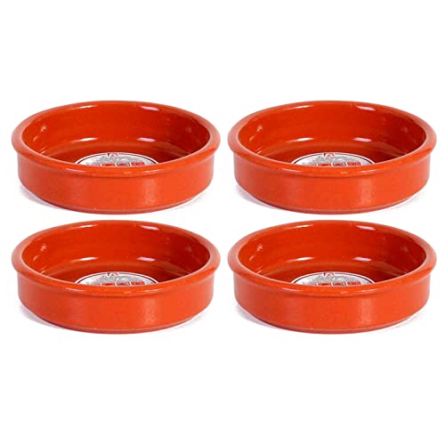 Tradineur - Pack de 4 Cazuelas redonda de barro - Apta para vitro y horno - Ideal para guisos y asados caseros – Ø 16 cm