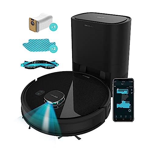 Cecotec Robot Aspirador con Base de Autovaciado Conga 7290 Eternal Home X-Treme. Tecnología Láser, Potencia de Succión 3000 Pa, Cepillo Multifunción, Control App Asistente Alexa, 2 Mopas