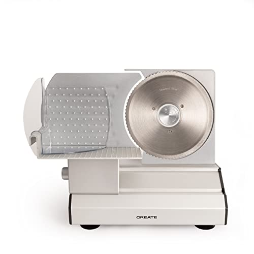 CREATE/CHEF SLICE/Cortafiambres eléctrico Gris/Sistema extrafino, incluye 2 cuchillas de acero inoxidable