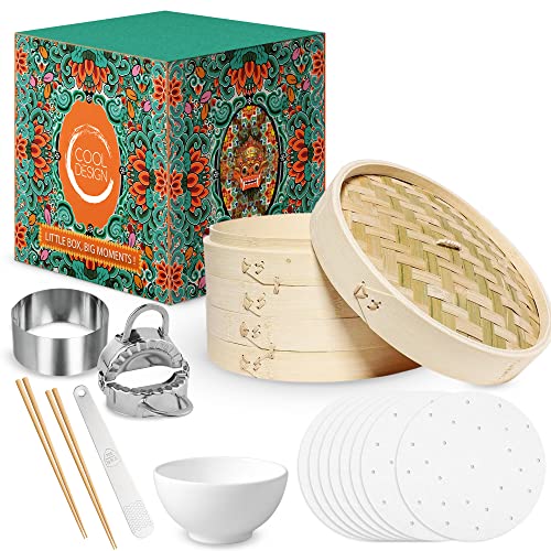 COOL DESIGN Vaporera de bambú, kit de utensilios para Dim Sum, gyozas, Cesta asiatica de bambú, para cocinar al vapor, Dumplings, cocina saludable