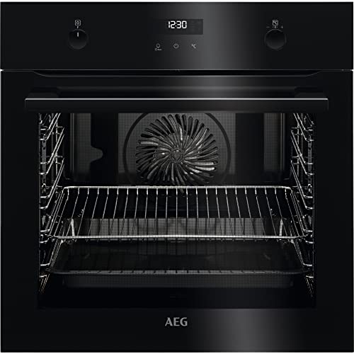 AEG BPE535160B Horno Multifunción, Limpieza Pirolítica, 10 funciones, 45 programas, 3 niveles Cocción, Mandos escamoteables, Pantalla LED explore táctil, Negro, Clase A+, 71 Litros