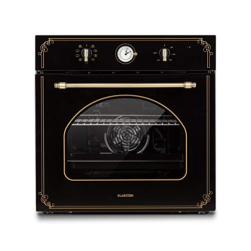Klarstein Victoria Horno de cocina - Horno electrico empotrable, Diseño retro, 9 funciones, Autoapagado, 50-250°C, 70 litros, 10 alturas, Fácil de limpiar gracias a su apertura, Iluminación, Negro