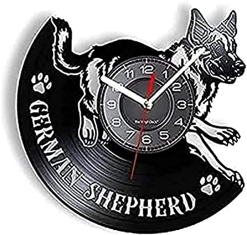 Reloj de pared con pilas, silencioso, sin tictac, moderno, pastor alemán, reloj de pared, reloj de pared para cachorros, perro de trabajo en casa, álbum de vinilo retro, reloj de pared con registro, r