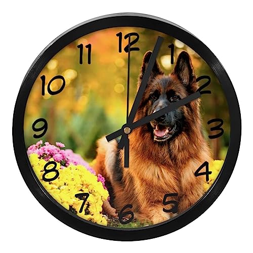 Luoweisi Reloj de pared de 9.8 pulgadas, silencioso, redondo, moderno, decorativo, para sala de estar, dormitorio, habitación de los niños, cocina, oficina, decoración del hogar, perro, pastor alemán
