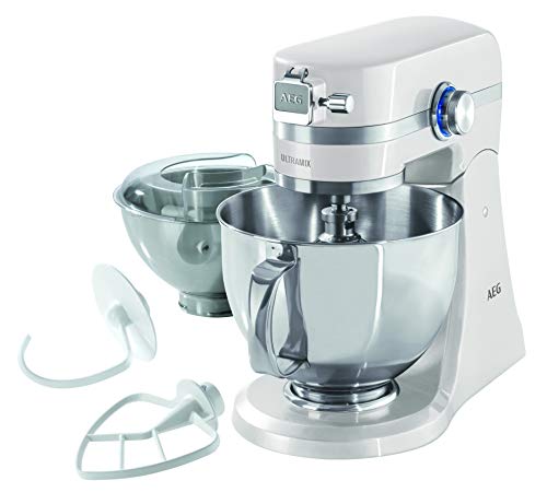 AEG KM4100 - Robot de Cocina UltraMix Amasadora y Batidora con Bol - 1000W, 10 Velocidades, 2 Boles (2,9L y 4,8L), Apta para Lavavajillas, Iluminación LED, Múltiples Varillas, Color Blanco Roto