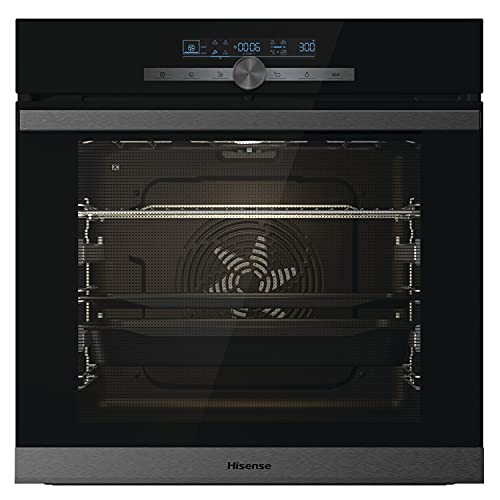 Hisense BSA66334PG Horno Pirolítico con Vapor 100% + Función Freidora de Aire sin Aceite, Gran Capacidad 77L,Cocción Simultanea 5 Niveles, ventilador XXL, Pizza mode 300º, Puertas removibles Negro