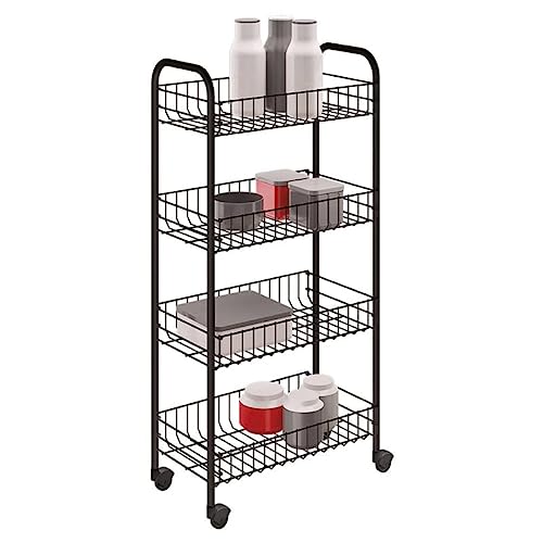 Carrito Metaltex Pisa de 4 niveles con ruedas, carro de almacenamiento multiusos para el hogar, incluida la cocina, el baño, la oficina y el garaje, negro, 41 x 23 x 84 centímetros, 4 Cestos