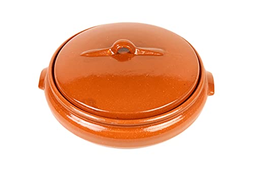 CERÁMICA RAMBLEÑA | Cazuela barro refractario con tapadera | Cazuela fuego directo | Cazuela cerámica tradicional | Cazuela para horno | Cazuela con tapadera 30x27x13 cm | 2.3 litros
