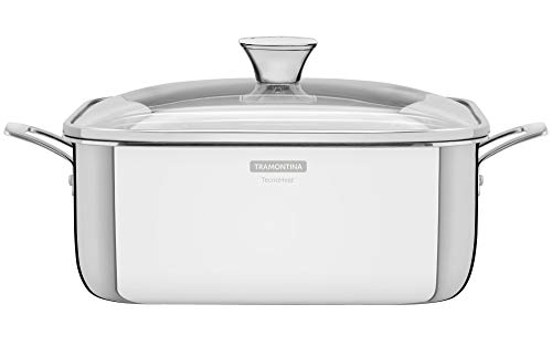 TRAMONTINA - Cacerola Grano, Cuadrada, de Acero Inoxidable y Terminación Brillante, con Cuerpo Triple y Tapa, 7,3 L