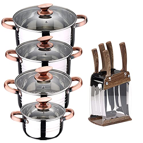 San Ignacio Bateria de cocina 8 piezas apta para induccion Altea en acero inoxidable con set de 6 cuchillos de acero inoxidable con tacoma, PK3239