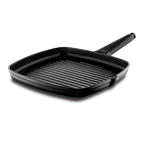 WECOOK! Ecostone Grill Asador Inducción Rayas 20 X 20cm, Antiadherente Ecológico sin PFOA, Aluminio Fundido, 5mm Espesor, Mango Madera Plegable, Apta Todas las Cocinas