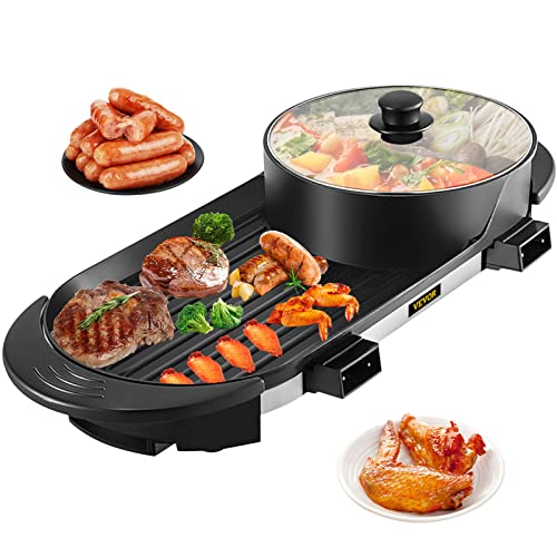 VEVOR Parrilla Eléctrica con Olla Caliente 2 en 1 Parrilla Eléctrica de Barbacoa Multifuncional Parrilla Eléctrica Portátil con Olla 2200 W sin Humo Temperatura Ajustable para 2-8 Personas