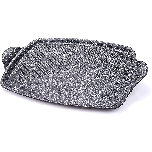 Euro Lux parrilla de de fundido para inducción – Media lisa – Media acanalados., 43 x 28 x 2 cm, ceramikoberfläche – libre de PFOA – Fabricado en Alemania.