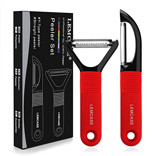 LEMCASE Pelapatatas, Pelador Patatas - Peladores de Fruta y Verdura, Pela Manual, Peeler - Mango de Silicona y Sharp Cuchilla de Acero Inoxidable | Rojo (2 Piezas Set)