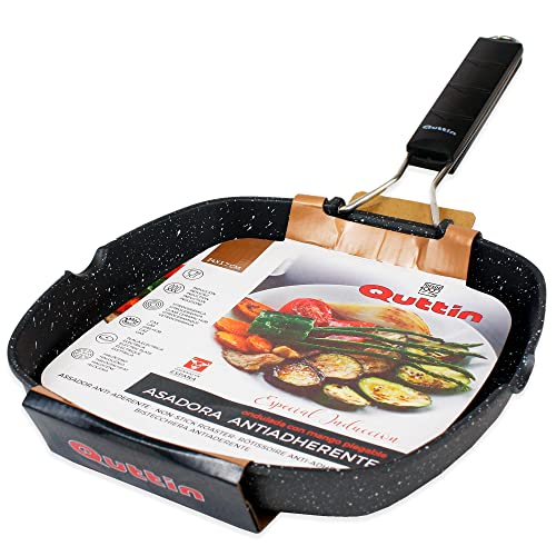 Quttin Sarten Asadora Aluminio Antiadherente, Grill Asador con Rayas Onduladas Para Todo Tipo de Cocina. Mango Plegable. Revestimiento Resistente y Duradero. No Raya. Diametro 24cm. Modelo Bakelit