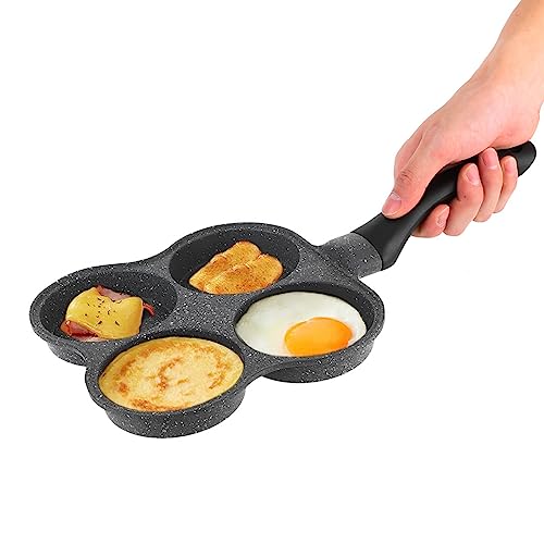 Sartén para Tortitas con 4 Agujeros Sartén Sartenes 4 en 1 Sartén de Antiadherente Sarten Tortilla Cocina de Sartén de Desayuno para Bistec Frito Panqueques Tocino