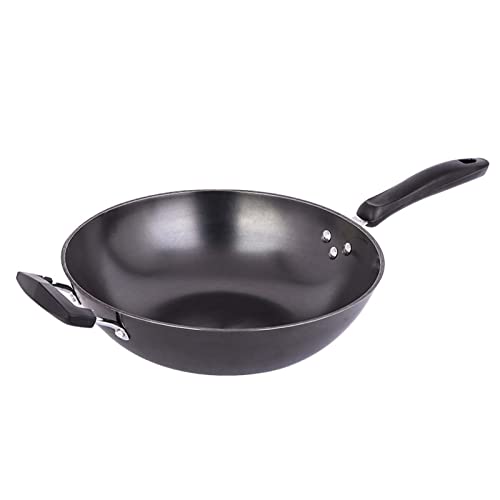 Wok Sarten Antióxido, Wok Sartenes Mango Ergonómico y Antiadherente, Multifunción Wok Chino para Estufas Eléctricas, De Inducción O De Gas (B 32cm)