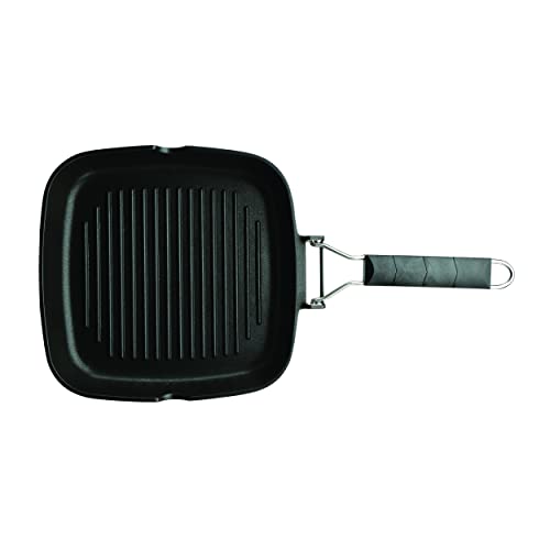 Moneta Pro Grill, Sartén de Inducción con Mango Plegable, Revestimiento Antiadherente y Antiarañazos, Plancha Apta para Todo Tipo de Cocinas, Apta para el Lavavajillas, 28x28 cm