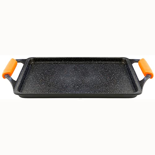WECOOK! - Bandeja Asadora de Aluminio Fundido ECOCHEF 37x25cm, Antiadherente con Titanium Ecológico sin PFOA, Apta todo tipo de cocinas, Inducción y Horno, Asas de Silicona, Plancha de Asar, Grill