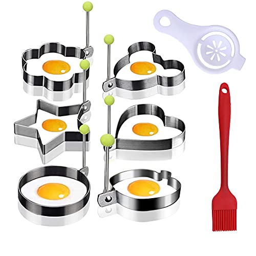 Molde para Tortilla De Acero Inoxidable De 8 Piezas con Asa, Aro De Huevo, Molde De 6 Formas Diferentes, Separador De Clara De Huevo, Cepillo De Aceite De Silicona, Utensilios De Cocina para Freír