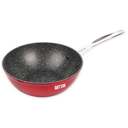 Quttin - Sartén Wok Antiadherente de inducción Ecologi con Mango. Para todo tipo de cocinas. Aluminio Forjado Doble Capa. Resistente Duradera. Wok Negro 28 cm