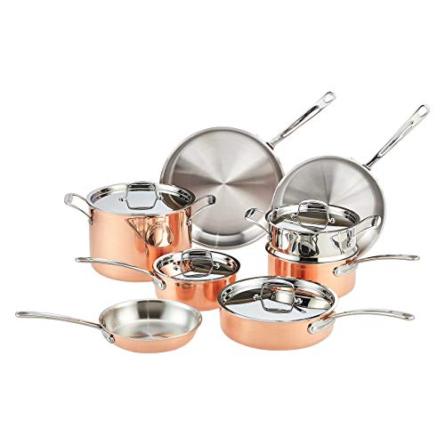 AmazonCommercial - Juego de utensilios de cocina de cobre de 3 capas, juego de 12 piezas