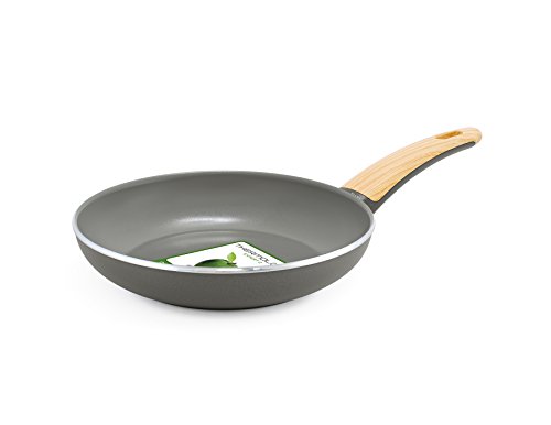 GreenPan Eco-Smartshape Sartén antiadherente de cerámica de 20 cm, madera clara, sin PFAS, apta para inducción, apta para lavavajillas, negra