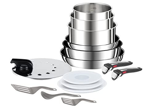 Tefal Ingenio Preference On – Batería de cocina de 15 piezas, diseño apilable, ahorra espacio, mango extraíble, sin PFOA, revestimiento antiadherente, Themo-Signal, apto todas cocinas, diseño Francia
