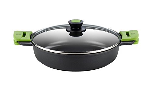 BRA Efficient - Cacerola baja con tapa de cristal y asas de silicona, 36 cm